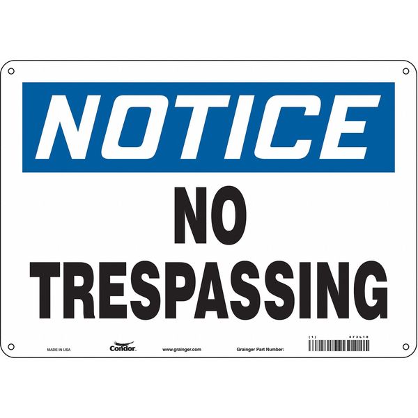 SKU G5509030Categories SafetyDescription Safety Sign, Horizontal Rectangle, Number of Printed Sides 1, English, Sign Format Traditional OSHA, Sign Legend No Trespassing, Sign Legend Background Color White, Sign Legend Style TextgraingerSKU: 473L18, mscSKU: , zoro_no: G5509030, mongo_id: 65bbe9fd22d7a989a998bbb8