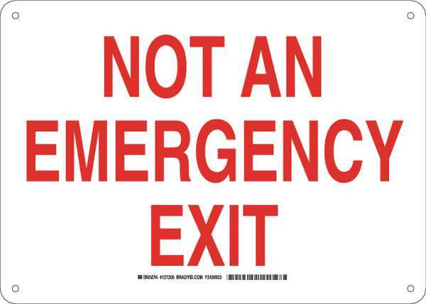 SKU G7392073Categories SafetyDescription Emergency Exit Sign, Sign Subject Matter Exit and Entrance, Height 10 In., Width 14 In., Sign Material Plastic, Sign Mounting Style With Mounting Holes, Header No Header, Legend Not An Emergency Exit, Printed Language English, Sign Shape Rectangle$17.49 / eachWeb priceEmergency EXit Sign, 10"X14", PlasticSKU G7392073Categories SafetyDescription Emergency Exit Sign, Sign Subject Matter Exit and Entrance, Height 10 In., Width 14 In., Sign Material Plastic, Sign Mounting Style With Mounting Holes, Header No Header, Legend Not An Emergency Exit, Printed Language English, Sign Shape Rectangle$17.49 / eachWeb price