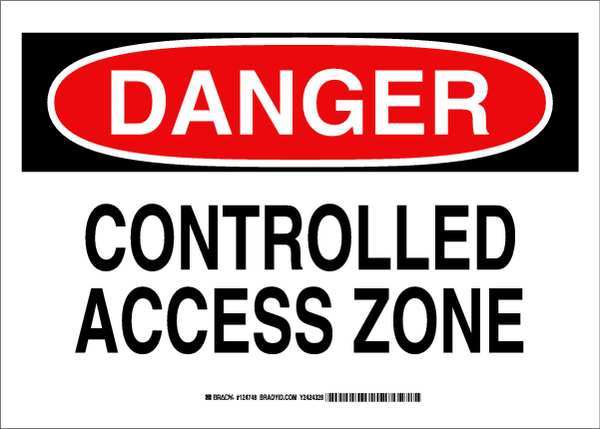 Danger Sign, 10X14, Legend: Controlled Access Zone