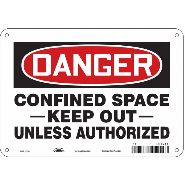 SKU G5077733Categories SafetyDescription Safety Sign, Vertical Rectangle, Number of Printed Sides 1, English, Sign Format Traditional OSHA, Sign Legend Confined Space -Keep Out- Unless Authorized, Sign Legend Background Color White, Sign Legend Style TextgraingerSKU: 465L57, mscSKU: , zoro_no: G5077733, mongo_id: 65bbea2822d7a989a999a121