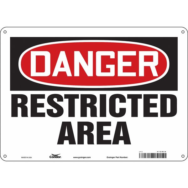 SKU G5180301Categories SafetyDescription Safety Sign, Horizontal Rectangle, Number of Printed Sides 1, English, Sign Format Traditional OSHA, Sign Legend Restricted Area, Sign Legend Background Color White, Sign Legend Style TextgraingerSKU: 472R88, mscSKU: , zoro_no: G5180301, mongo_id: 65bbea2822d7a989a999a1ac