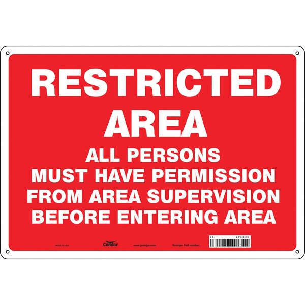 SKU G5814258Categories SafetyDescription Safety Sign, Horizontal Rectangle, Number of Printed Sides 1, English, Sign Format Other Format, Sign Legend Restricted Area All Persons Must Have Permission From Area Supervision Before Entering Area, Sign Legend Background Color Red, Sign Legend Style TextgraingerSKU: 472X32, mscSKU: , zoro_no: G5814258, mongo_id: 65bbea2822d7a989a999a18f