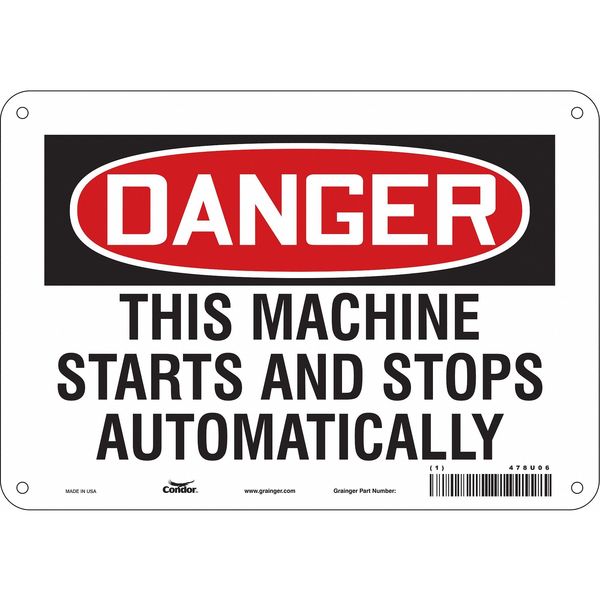 SKU G5840733Categories SafetyDescription Safety Sign, Vertical Rectangle, Number of Printed Sides 1, English, Sign Format Traditional OSHA, Sign Legend This Machine Starts And Stops Automatically, Sign Legend Background Color White, Sign Legend Style TextgraingerSKU: 478U06, mscSKU: , zoro_no: G5840733, mongo_id: 65bbea2822d7a989a999a323
