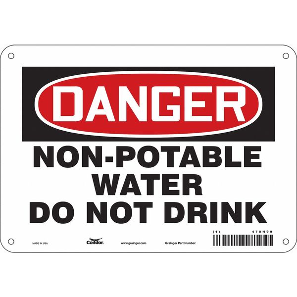Safety Sign, 7 in Height, 10 in Width, Polyethylene, Vertical Rectangle, English, 470H99SKU G5065617Categories SafetyDescription Safety Sign, Vertical Rectangle, Number of Printed Sides 1, English, Sign Format Traditional OSHA, Sign Legend Non-Potable Water Do Not Drink, Sign Legend Background Color White, Sign Legend Style TextgraingerSKU: 470H99, mscSKU: , zoro_no: G5065617, mongo_id: 65bbea2822d7a989a999a1df