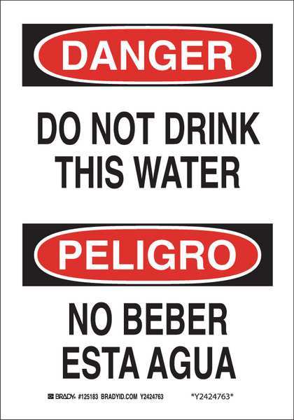 SKU G8645189Categories SafetyDescription Danger Sign, Sign Subject Matter Potable Water, Height 14 In., Width 10 In., Sign Material Polyester, Sign Mounting Style Adhesive Surface, Header Danger/Peligro, Legend Do Not Drink This Water/No Beber Esta Agua, Printed Language English, Spanish, Sign Shape Rectangle$16.99 / eachWeb priceDanger Sign, 14"X10", Polyester, Sign Legend Color: Black, 125186SKU G8645189Categories SafetyDescription Danger Sign, Sign Subject Matter Potable Water, Height 14 In., Width 10 In., Sign Material Polyester, Sign Mounting Style Adhesive Surface, Header Danger/Peligro, Legend Do Not Drink This Water/No Beber Esta Agua, Printed Language English, Spanish, Sign Shape Rectangle$16.99 / eachWeb price -