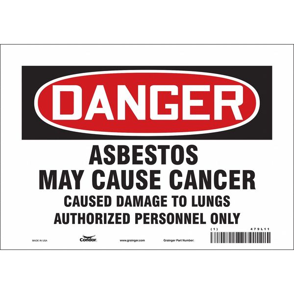 Safety Sign, 7 in Height, 10 in Width, Vinyl, Vertical Rectangle, English, 479L11SKU G5606769Categories SafetyDescription Safety Sign, Vertical Rectangle, Number of Printed Sides 1, English, Sign Format Traditional OSHA, Sign Legend Asbestos May Cause Cancer Causes Damage To Lungs Authorized Personnel Only, Sign Legend Background Color White, Sign Legend Style TextgraingerSKU: 479L11, mscSKU: , zoro_no: G5606769, mongo_id: 65bbea2822d7a989a999a2cb