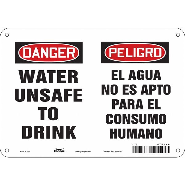 Safety Sign, 10" W x 7" H, 0.032" Thick, 470J46SKU G5903252Categories SafetyDescription Safety Sign, Vertical Rectangle, Number of Printed Sides 1, English, Spanish, Sign Format Traditional OSHA, Sign Legend Water Unsafe To Drink/El Agua No Es Apto Para El Consumo Humano, Sign Legend Background Color White, Sign Legend Style TextgraingerSKU: 470J46, mscSKU: , zoro_no: G5903252, mongo_id: 65bbea2822d7a989a999a30c