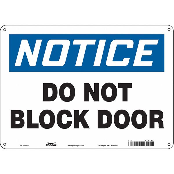 Safety Sign, 10 in Height, 14 in Width, Aluminum, Horizontal Rectangle, English, 471Y20SKU G5124493Categories SafetyDescription Safety Sign, Horizontal Rectangle, Number of Printed Sides 1, English, Sign Format Traditional OSHA, Sign Legend Do Not Block Door, Sign Legend Background Color White, Sign Legend Style TextgraingerSKU: 471Y20, mscSKU: , zoro_no: G5124493, mongo_id: 65bbea2822d7a989a999a303