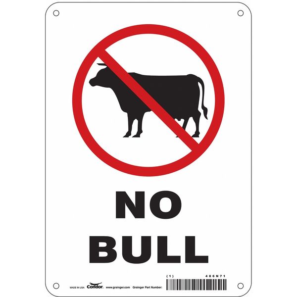 Safety Sign, 10 in Height, 7 in Width, Aluminum, Horizontal Rectangle, English, 486N71SKU G6260471Categories SafetyDescription Safety Sign, Horizontal Rectangle, Number of Printed Sides 1, English, Sign Format Other Format, Sign Legend No Bull, Sign Legend Background Color White, Sign Legend Style Symbol and TextgraingerSKU: 486N71, mscSKU: , zoro_no: G6260471, mongo_id: 65bbea2822d7a989a999a146