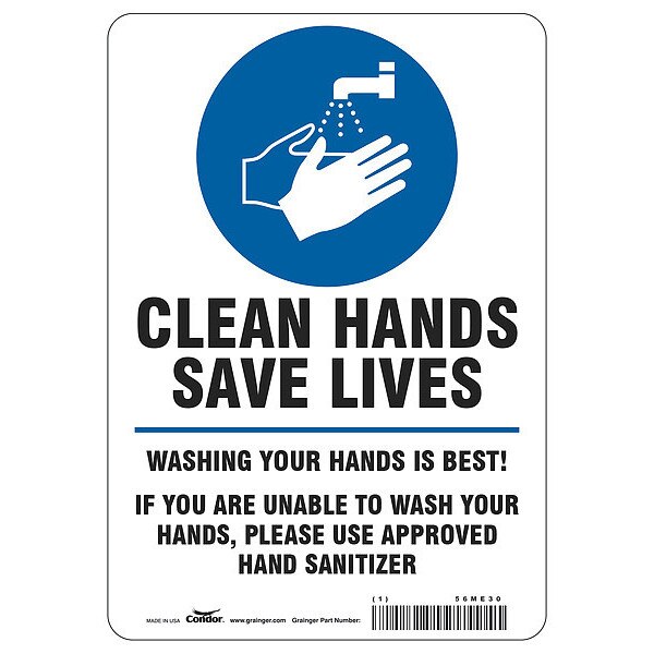 SKU G8341768Categories SafetyDescription Printed Language English, Sign Header No Header, Sign Legend Clean Hands Save Lives Washing Your Hands Is Best! If You Are Unable To Wash Your Hands, Please Use Approved Hand Sanitizer.graingerSKU: 56ME30, mscSKU: , zoro_no: G8341768, mongo_id: 65bbea2822d7a989a999a2f2