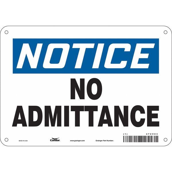 SKU G5889882Categories SafetyDescription Safety Sign, Vertical Rectangle, Number of Printed Sides 1, English, Sign Format Traditional OSHA, Sign Legend No Admittance, Sign Legend Background Color White, Sign Legend Style TextgraingerSKU: 472V03, mscSKU: , zoro_no: G5889882, mongo_id: 65bbea2822d7a989a999a149