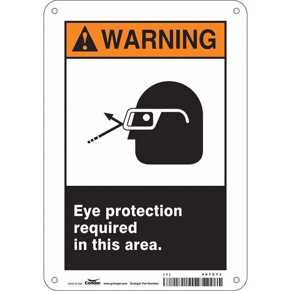 Safety Sign, 10 in Height, 7 in Width, Aluminum, Horizontal Rectangle, English, 467C73SKU G5798620Categories SafetyDescription Safety Sign, Horizontal Rectangle, Number of Printed Sides 1, English, Sign Format ANSI/OSHA Format, Sign Legend Eye Protection Required In This Area., Sign Legend Background Color Black, White, Sign Legend Style Symbol and TextgraingerSKU: 467C73, mscSKU: , zoro_no: G5798620, mongo_id: 65bbea2822d7a989a999a109
