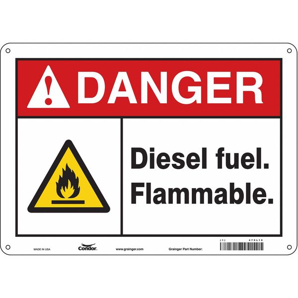 Safety Sign, 10 in Height, 14 in Width, Aluminum, Horizontal Rectangle, English, 470L10SKU G5234868Categories SafetyDescription Safety Sign, Horizontal Rectangle, Number of Printed Sides 1, English, Sign Format ANSI/OSHA Format, Sign Legend Diesel Fuel. Flammable., Sign Legend Background Color White, Sign Legend Style Symbol and TextgraingerSKU: 470L10, mscSKU: , zoro_no: G5234868, mongo_id: 65bbea2822d7a989a999a129