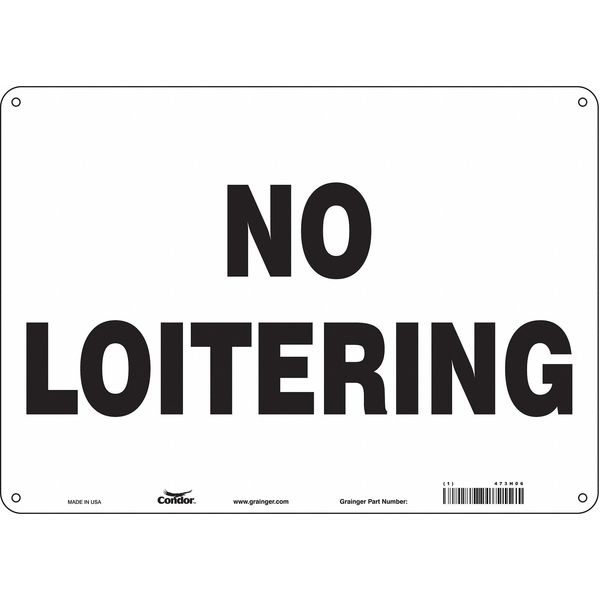 Safety Sign, 10 in Height, 14 in Width, Aluminum, Horizontal Rectangle, English, 473H06SKU G5579231Categories SafetyDescription Safety Sign, Horizontal Rectangle, Number of Printed Sides 1, English, Sign Legend No Loitering, Sign Legend Background Color White, Sign Legend Style TextgraingerSKU: 473H06, mscSKU: , zoro_no: G5579231, mongo_id: 65bbea2822d7a989a999a10e