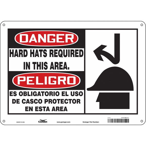 Safety Sign, Personal Protection, 10" H, 466M91SKU G5101770Categories SafetyDescription Safety Sign, Horizontal Rectangle, Number of Printed Sides 1, English, Spanish, Sign Format Traditional OSHA, Sign Legend Hard Hats Required In This Area/Es Obligatorio El Uso De Casco Protector En Esta Area, Sign Legend Background Color White, Sign Legend Style Symbol and TextgraingerSKU: 466M91, mscSKU: , zoro_no: G5101770, mongo_id: 65bbe9ad22d7a989a996f352