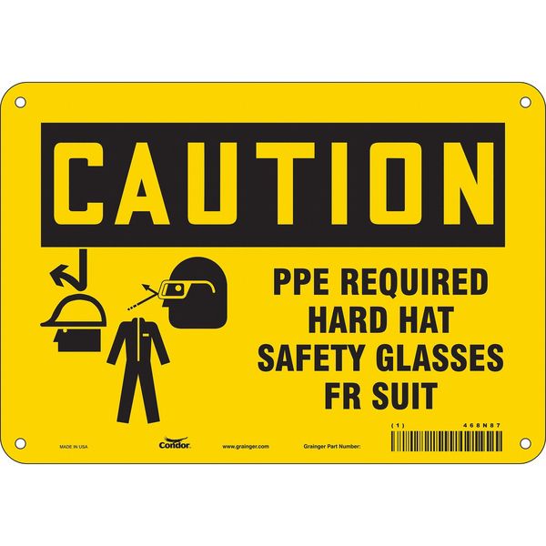 SKU G5564820Categories SafetyDescription Safety Sign, Vertical Rectangle, Number of Printed Sides 1, English, Sign Format Traditional OSHA, Sign Legend PPE Required Hard Hat Safety Glasses FR Suit, Sign Legend Background Color Yellow, Sign Legend Style Symbol and TextgraingerSKU: 468N87, mscSKU: , zoro_no: G5564820, mongo_id: 65bbe9ad22d7a989a996f37f