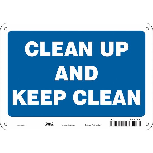 Safety Sign, 7 in Height, 10 in Width, Aluminum, Vertical Rectangle, English, 468Y32SKU G5875788Categories SafetyDescription Safety Sign, Vertical Rectangle, Number of Printed Sides 1, English, Sign Format Other Format, Sign Legend Clean Up And Keep Clean, Sign Legend Background Color Blue, White, Sign Legend Style TextgraingerSKU: 468Y32, mscSKU: , zoro_no: G5875788, mongo_id: 65bbe9ad22d7a989a996f2ea