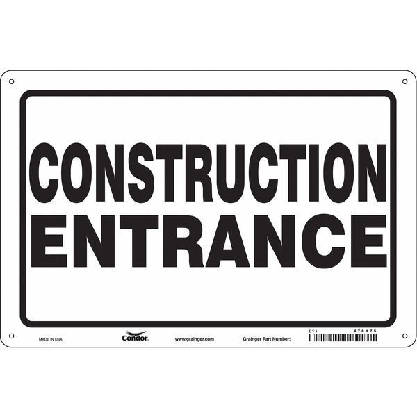 Safety Sign, 24 in Height, 36 in Width, Aluminum, Horizontal Rectangle, EnglishSKU G5892271Categories SafetyDescription Safety Sign, Horizontal Rectangle, Number of Printed Sides 1, English, Sign Format Other Format, Sign Legend Construction Entrance, Sign Legend Background Color White, Sign Legend Style TextgraingerSKU: 476H75, mscSKU: , zoro_no: G5892271, mongo_id: 65bbe9ad22d7a989a996f159