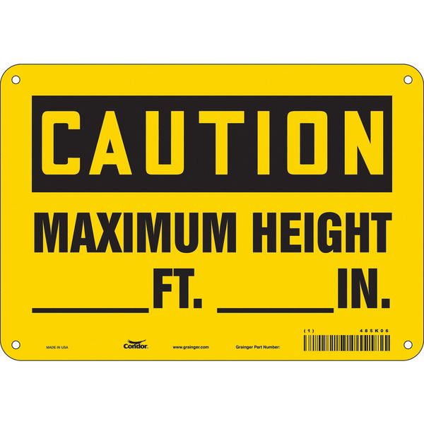 Safety Sign, 7 in Height, 10 in Width, Aluminum, Vertical Rectangle, English, 485K06SKU G6290477Categories SafetyDescription Safety Sign, Vertical Rectangle, Number of Printed Sides 1, English, Sign Format Traditional OSHA, Sign Legend Maximum Height ___ Ft. ___ In., Sign Legend Background Color Yellow, Sign Legend Style TextgraingerSKU: 485K06, mscSKU: , zoro_no: G6290477, mongo_id: 65bbe9ad22d7a989a996f210