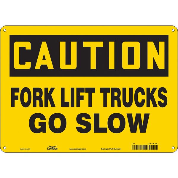 Safety Sign, 10 in Height, 14 in Width, Aluminum, Horizontal Rectangle, English, 476N89SKU G5769500Categories SafetyDescription Safety Sign, Horizontal Rectangle, Number of Printed Sides 1, English, Sign Format Traditional OSHA, Sign Legend Forklift Trucks Go Slow, Sign Legend Background Color Yellow, Sign Legend Style TextgraingerSKU: 476N89, mscSKU: , zoro_no: G5769500, mongo_id: 65bbe9ad22d7a989a996f2b3