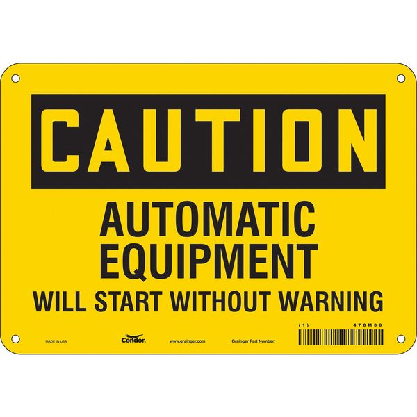 Safety Sign, 7 in Height, 10 in Width, Aluminum, Vertical Rectangle, English, 478M08SKU G5776458Categories SafetyDescription Safety Sign, Vertical Rectangle, Number of Printed Sides 1, English, Sign Format Traditional OSHA, Sign Legend Automatic Equipment Will Start Without Warning, Sign Legend Background Color Yellow, Sign Legend Style TextgraingerSKU: 478M08, mscSKU: , zoro_no: G5776458, mongo_id: 65bbe9ad22d7a989a996f255