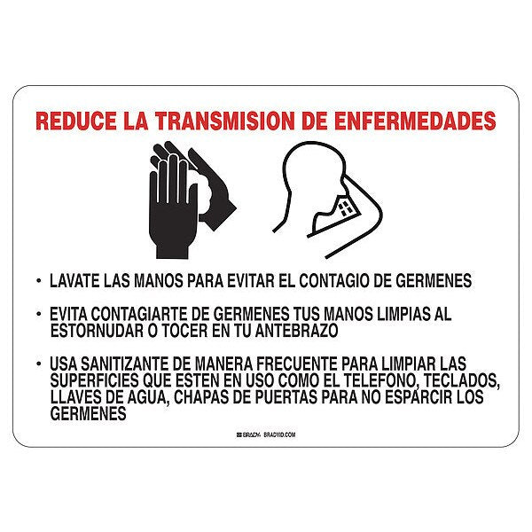 Covid 19 Sign 10X14 Spanish Reduce Disea, 10 in Height, 14 in Width, Polystyrene, Spanish