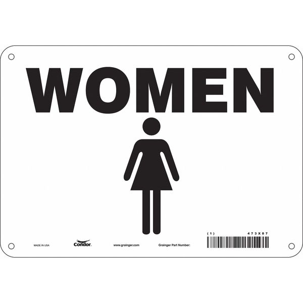 Restroom Sign, 7" W, 10" H, 0.032" Thick, 473X87SKU G5558697Categories SafetyDescription Restroom Sign, Horizontal Rectangle, Number of Printed Sides 1, English, Sign Legend Women, Sign Legend Background Color White, Sign Legend Style Symbol and TextgraingerSKU: 473X87, mscSKU: , zoro_no: G5558697, mongo_id: 65bbe9ad22d7a989a996f185