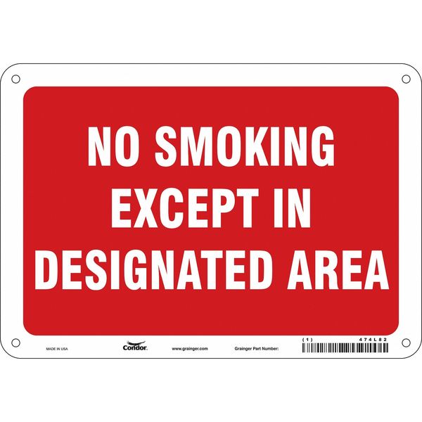 Safety Sign, 7" H, 10" W, Vertical Rectangle, English, 474L82SKU G5195379Categories SafetyDescription Safety Sign, Vertical Rectangle, Number of Printed Sides 1, English, Sign Format Other Format, Sign Legend No Smoking Except In Designated Areas, Sign Legend Background Color Red, White, Sign Legend Style TextgraingerSKU: 474L82, mscSKU: , zoro_no: G5195379, mongo_id: 65bbe9ad22d7a989a996f196