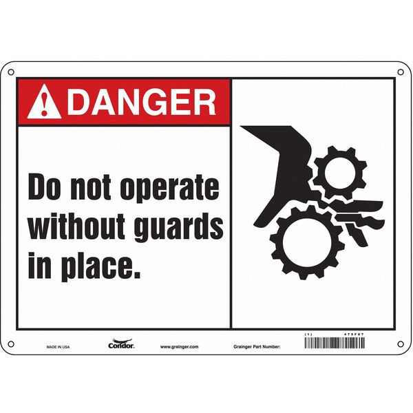 Safety Sign, 10 in Height, 14 in Width, Aluminum, Horizontal Rectangle, English, 475F87SKU G5555632Categories SafetyDescription Safety Sign, Horizontal Rectangle, Number of Printed Sides 1, English, Sign Format ANSI/OSHA Format, Sign Legend Do Not Operate Without Guards In Place., Sign Legend Background Color White, Sign Legend Style Symbol and TextgraingerSKU: 475F87, mscSKU: , zoro_no: G5555632, mongo_id: 65bbe9ad22d7a989a996f1e8