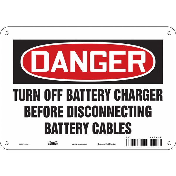 Safety Sign, 7 in Height, 10 in Width, Aluminum, Vertical Rectangle, English, 476F17SKU G5899131Categories SafetyDescription Safety Sign, Vertical Rectangle, Number of Printed Sides 1, English, Sign Format Traditional OSHA, Sign Legend Turn Off Battery Charger Before Disconnecting Battery Cables, Sign Legend Background Color White, Sign Legend Style TextgraingerSKU: 476F17, mscSKU: , zoro_no: G5899131, mongo_id: 65bbe9ad22d7a989a996f1b7