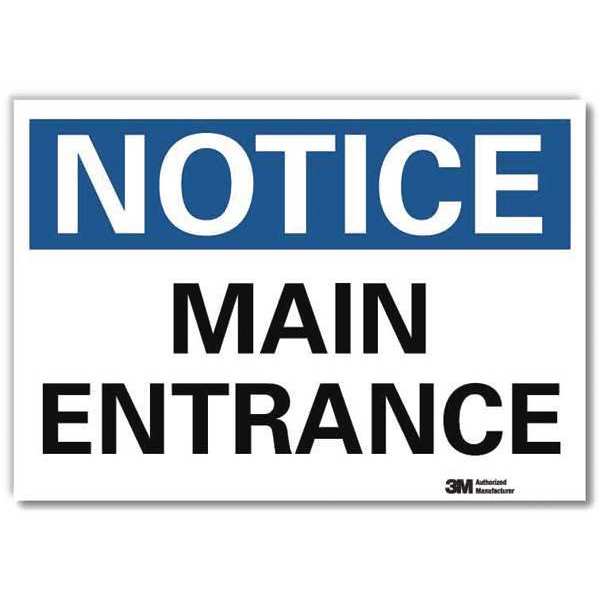 Notice Sign, 7\u0022 x 10\u0022, Vinyl, 7 in H, 10 in W, Reflective Sheeting, English, U5-1313-RD_10X7SKU G2760838Categories SafetyDescription Notice Sign, Vertical Rectangle, Number of Printed Sides 1, English, Sign Format Traditional OSHA, Sign Legend Main Entrance, Sign Legend Background Color White, Sign Legend Style TextgraingerSKU: 34JP94, mscSKU: , zoro_no: G2760838, mongo_id: 65bbe9ad22d7a989a996ecda