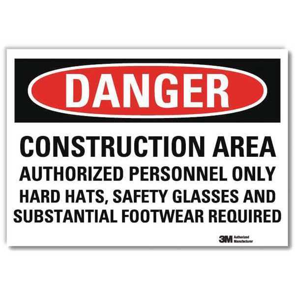 Danger Sign, 5 in H, 7 in W, Reflective Sheeting, Horizontal Rectangle, English, U3-1254-RD_7X5SKU G2750776Categories SafetyDescription Danger Sign, Horizontal Rectangle, Number of Printed Sides 1, English, Sign Format Traditional OSHA, Sign Legend Construction Area Authorized Personnel Only Hard Hats, Safety Glasses, Sign Legend Background Color White, Sign Legend Style TextgraingerSKU: 34MN10, mscSKU: , zoro_no: G2750776, mongo_id: 65bbe9ad22d7a989a996ed2b
