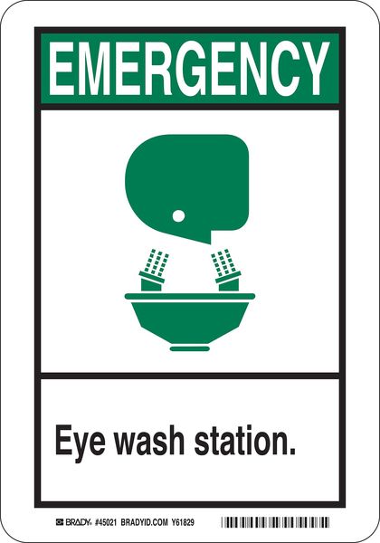 Eye Wash Sign, 10 in Height, 7 in Width, Plastic, Rectangle, EnglishSKU G1213175Categories SafetyDescription Eye Wash Sign, Sign Subject Matter Eyewash and Shower, Height 10 in, Width 7 in, Sign Material Plastic, Sign Mounting Style With Mounting Holes, Header Emergency, Legend Eye Wash Station., Printed Language English, Sign Shape RectanglegraingerSKU: , mscSKU: , zoro_no: G1213175, mongo_id: 65bbe9ad22d7a989a996efec