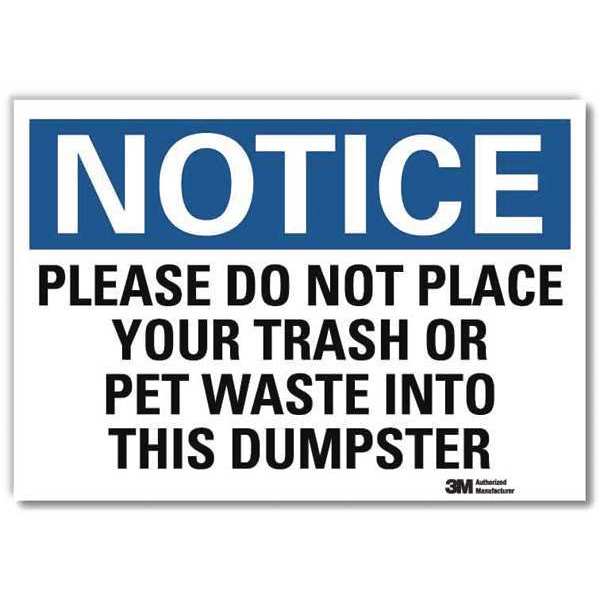 NoticeSign, ReflecSelfAdhVinyl, 10inWx7inH, U5-1449-RD_10X7SKU G2758817Categories SafetyDescription Notice Sign, Vertical Rectangle, Number of Printed Sides 1, English, Sign Format Traditional OSHA, Sign Legend Please Do Not Place Your Trash Or Pet Waste Into This Dumpster, Sign Legend Background Color White, Sign Legend Style TextgraingerSKU: 34JV08, mscSKU: , zoro_no: G2758817, mongo_id: 65bbe9ad22d7a989a996ec75