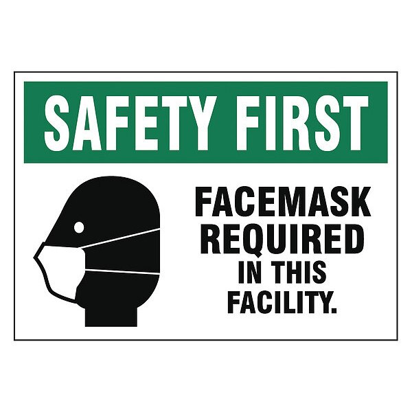 SKU G6674456Categories Adhesives, Epoxy & Sealants , SafetyDescription Adhesive Safety Sign, Sign Subject Matter Coronavirus Prevention, Height 7 in, Width 10 in, Sign Material Vinyl, Sign Mounting Style Adhesive Surface, Header Safety First, Legend Facemask Required In This Facility., Printed Language EnglishgraingerSKU: , mscSKU: , zoro_no: G6674456, mongo_id: 65bbe9ad22d7a989a996eb91