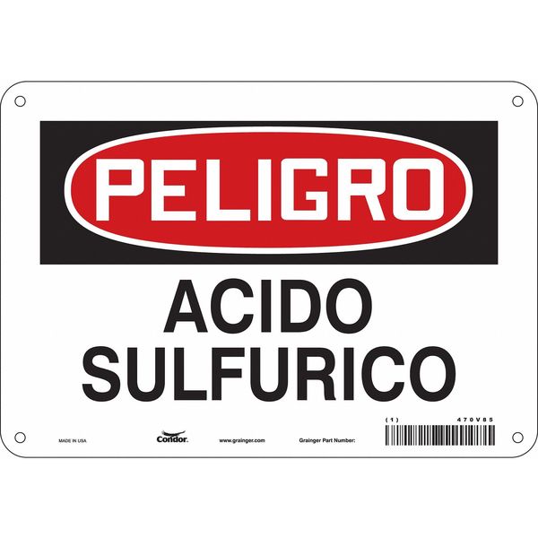 Safety Sign, 10" W, 7" H, 0.032" ThicknessSKU G5607399Categories SafetyDescription Safety Sign, Vertical Rectangle, Number of Printed Sides 1, Spanish, Sign Format Traditional OSHA, Sign Legend Acido Sulfurico, Sign Legend Background Color White, Sign Legend Style TextgraingerSKU: 470V85, mscSKU: , zoro_no: G5607399, mongo_id: 65bbe98822d7a989a9960c19