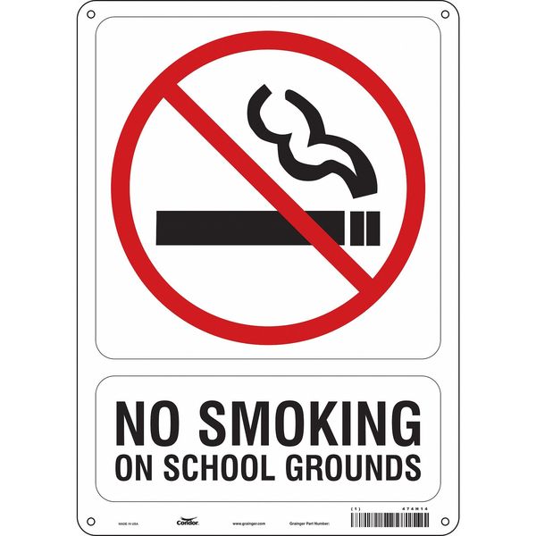 Safety Sign, 14 in H, 10" W, Vertical Rectangle, English, 474H14SKU G5128553Categories SafetyDescription Safety Sign, Vertical Rectangle, Number of Printed Sides 1, English, Sign Format Other Format, Sign Legend No Smoking On School Grounds, Sign Legend Background Color White, Sign Legend Style Symbol and TextgraingerSKU: 474H14, mscSKU: , zoro_no: G5128553, mongo_id: 65bbe98822d7a989a99609f0