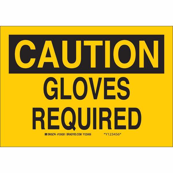 Sign, Caution, 10X14", Bk/Yel, Eng, Text, Legend: Gloves Required
