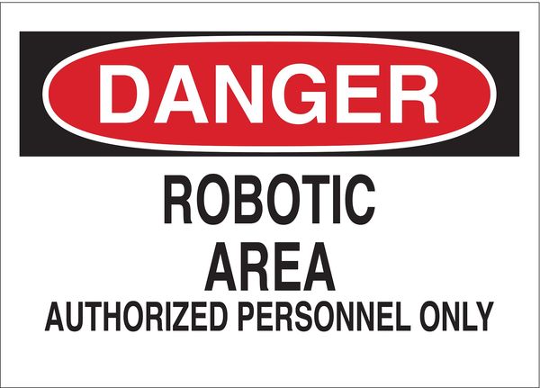 SKU G7437713Categories SafetyDescription Danger Sign, Sign Subject Matter Authorized Personnel and Restricted Access, Height 10 in, Width 14 in, Sign Material Polyester, Sign Mounting Style Adhesive Surface, Header Danger, Legend Robotic Area Authorized Personnel Only, Printed Language English, Sign Shape Rectangle$29.99 / eachWeb priceDanger Sign, 10 in Height, 14 in Width, Polyester, Rectangle, EnglishSKU G7437713Categories SafetyDescription Danger Sign, Sign Subject Matter Authorized Personnel and Restricted Access, Height 10 in, Width 14 in, Sign Material Polyester, Sign Mounting Style Adhesive Surface, Header Danger, Legend Robotic Area Authorized Personnel Only, Printed Language English, Sign Shape Rectangle$29.99 / eachWeb price -