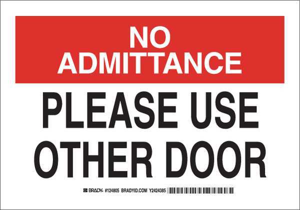 Admittance Sign, 10X14", Blk and Rd/Wht, Legend: Please Use Other Door, 124807