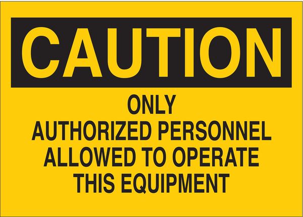 SKU G7422243Categories SafetyDescription Caution Sign, Sign Subject Matter Machine and Operational, Height 10 In., Width 14 In., Sign Material Polyester, Header Caution, Legend Only Authorized Personnel Allowed To Operate This Equipment, Printed Language English, Sign Shape Rectangle$29.99 / eachWeb priceCaution Sign, 10" Height, 14" Width, Polyester, Rectangle, EnglishSKU G7422243Categories SafetyDescription Caution Sign, Sign Subject Matter Machine and Operational, Height 10 In., Width 14 In., Sign Material Polyester, Header Caution, Legend Only Authorized Personnel Allowed To Operate This Equipment, Printed Language English, Sign Shape Rectangle$29.99 / eachWeb price -