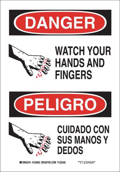 SKU G8455111Categories SafetyDescription Danger Sign, Sign Subject Matter Keep Hands Clear, Height 14 in, Width 10 in, Sign Material Polyester, Sign Mounting Style Adhesive Surface, Header Danger/Peligro, Legend Watch Your Hands And Fingers/Cuidado Coin Sus Mano, Printed Language English, Spanish, Sign Shape Rectangle$16.99 / eachWeb priceDanger Sign, 14 in Height, 10 in Width, Polyester, Rectangle, English, SpanishSKU G8455111Categories SafetyDescription Danger Sign, Sign Subject Matter Keep Hands Clear, Height 14 in, Width 10 in, Sign Material Polyester, Sign Mounting Style Adhesive Surface, Header Danger/Peligro, Legend Watch Your Hands And Fingers/Cuidado Coin Sus Mano, Printed Language English, Spanish, Sign Shape Rectangle$16.99 / eachWeb price -