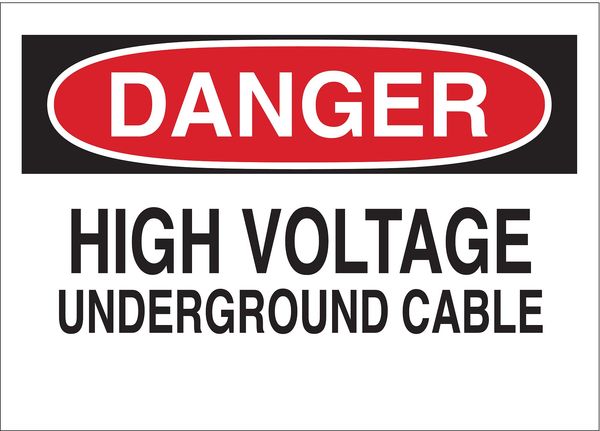 Danger Sign, 10X14", R and BK/WHT, ENG, Legend: High Voltage Underground Cable, 43128