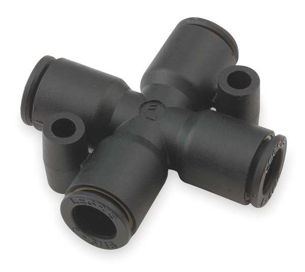 Description Equal Cross, Application Air, Color Black, Fitting Side A Connection Type Push-to-Connect, Fitting Side B Connection Type Push-to-Connect, Fitting Side C Connection Type Push-to-Connect, Includes Pre-Applied Thread Sealant Yes, Fitting Side A Tube Outer Diameter 1/4 in, Fitting Side B Tube Outer Diameter 1/4 in, Fitting Side C Tube Outer Diameter 1/4 in, Fitting Material Nylon, Maximum Operating Pressure 290 psi, Maximum Operating Temperature 176 Degrees F, Overall Length 1 13/32 in