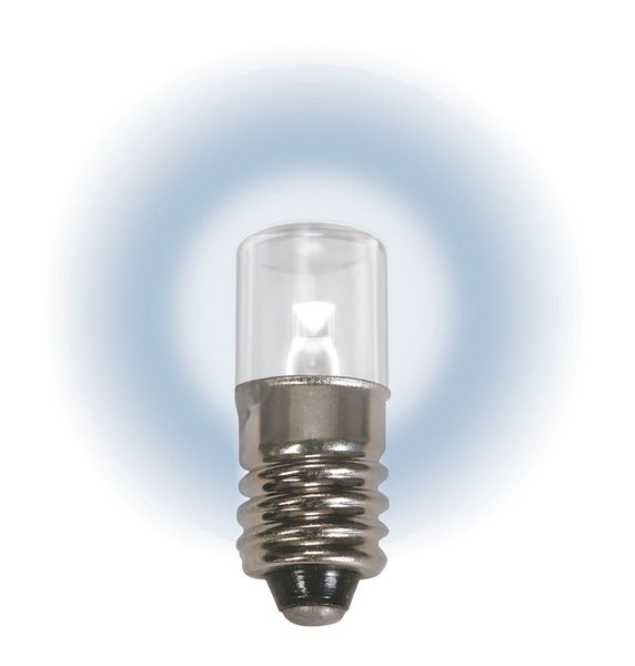 Description Miniature Bi-Polar LED Bulb, Trade Number LM1006MS-W, Bulb Shape T3-1/4, Bulb Base Type Miniature Screw (E10), 6.3 Voltage, General Purpose, 0.5 Watts, Bulb Type Miniature, 75mA Bulb Amps, Average Bulb Life 100,000 hr., Light Color White, Light Bulb Dia. 13/32 In., Bulb Housing Glass, Indoor Only, Standards Meets 2012 Lighting Legislation Energy, Replaces Bulb 40,46,50,133,134,401,438,502,1482