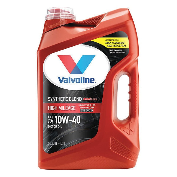 Motor Oil, Synthetic Blend, 10W-40, 5 Qt.SKU G4524615CategoriesDescription Engine Oil, Series High Mileage with Maxlife, Container Size 5 qt, Compatible Vehicle Type Cars, Light Duty Trucks, Base Formulation Synthetic Blend, SAE Viscosity Grade 10W-40, Standards API, Additives Included Detergents, Color Amber, Compatible Engine Type Gasoline Engines, Container Type Jug, Detergent Detergent Oil, Features High Mileage, Flash Point 220 Degrees F, ISO Viscosity Grade Not Specified, Maximum Operating Temperature 220 Degrees F, Minimum Operating Temperature -30 Degrees FgraingerSKU: 21A122, mscSKU: , zoro_no: G4524615, mongo_id: 65bbe97a22d7a989a995a0ec