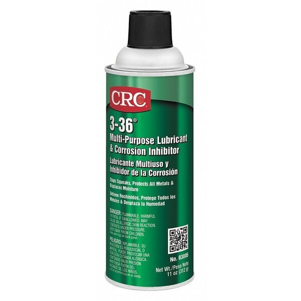 Multi-Purpose Lubricant and Corrosion Inhibitor, 3-36, -50 to 250 Degrees F, 11 oz Aerosol CanSKU G3289587CategoriesDescription General Purpose Lubricant, Wet, CRC, 3-36, Net Fill 11 oz, Container Size 16 oz, Lubricant Container Aerosol Can, Petroleum Distillates, No Additives Primary Additive, Min. Operating Temp. -50 Degrees F, Max. Operating Temp. 250 Degrees F, NSF Rating H2 No Food Contact, 50 State VOC Compliant Yes, VOC Content 0 Percent, Lubricant Color Blue/Green, Odorless No, Flammable Flammability, Extremely Flammable Aerosol (Category 1), Flash Point 192 Degrees F$10.74 / eachWeb price -