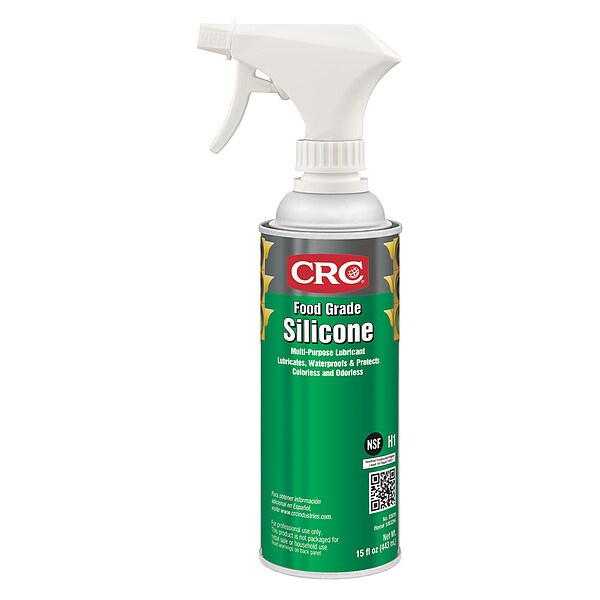 Multi-Purpose Food Grade Silicone Lubricant, H1 Food Grade, -40 to 400 Degree F, 16 Oz Non AerosolSKU G1171457CategoriesDescription General Purpose Lubricant, Dry, CRC, Net Fill 15 oz, Container Size 16 oz, Lubricant Container Spray Bottle, Silicone, No Additives Primary Additive, Min. Operating Temp. -40 Degrees F, Max. Operating Temp. 400 Degrees F, NSF Rating H1 Food Grade, 50 State VOC Compliant No, VOC Content 97 Percent, Lubricant Color Colorless, Odorless No, Flammable Flammability, Highly Flammable Liquid (Category 2), Flash Point Less Than 0 Degrees F, Standards CFR 21-178.3570, No USDA Certified Biobased ProductgraingerSKU: 4JB32, mscSKU: , zoro_no: G1171457, mongo_id: 65bbe90e22d7a989a99314b5