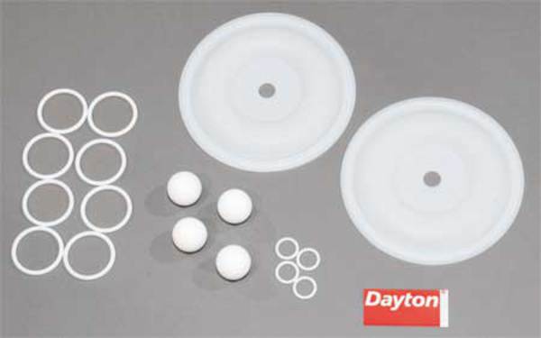 Description Diaphragm Pump Repair Kit, Check Ball Material PTFE, Compatible with Grainger Part Number 22A607, 34TJ42, 6PY54, 6PY54A, 6PY55, 6PY55A, Compatible with Manufacturer Model Number 22A607, 34TJ42, 6PY54, 6PY54A, 6PY55, 6PY55A, Diaphragm Material PTFE, Number of Check Balls 4, Number of Diaphragms 2, Number of O-Rings 12, Number of Seals 0, Valve Type Ball, Product Type Fluid End Repair Kit, Media Intake Pressure (Maximum) Not Applicable, Compatible with Pump Type Air Operated Double Diaphragm Pump