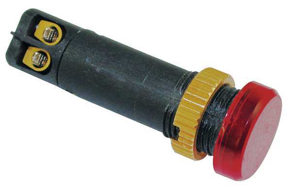 Description Raised Indicator Light, LED, Nylon Body With Polycarbonate Lens and Brass Nut, Red, Voltage 120V AC/DC, Size 12mm Mounting dia, Electrical Connection M2.5 Screw, Shape Round, Current Drawn 4.16 mA, Average Life 25,000 hr, IP Rating 40, Panel Thickness 0.028 in to 0.110 in, Standards UL